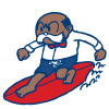 サーフィンを楽しむこんがり日焼けした「鉄腕アトム」のキャラクターたち。